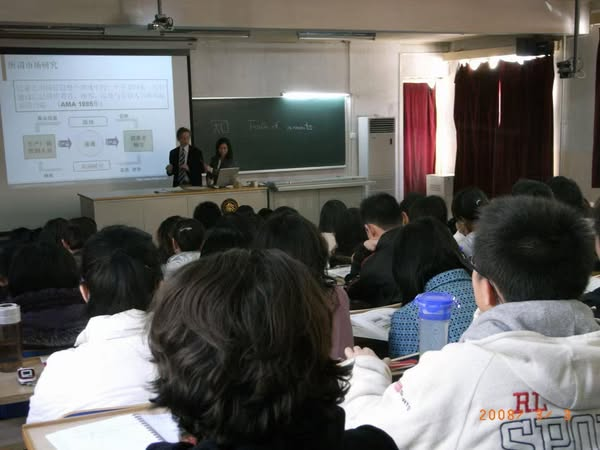 写真は中国の大学で講演する憲雄氏です。